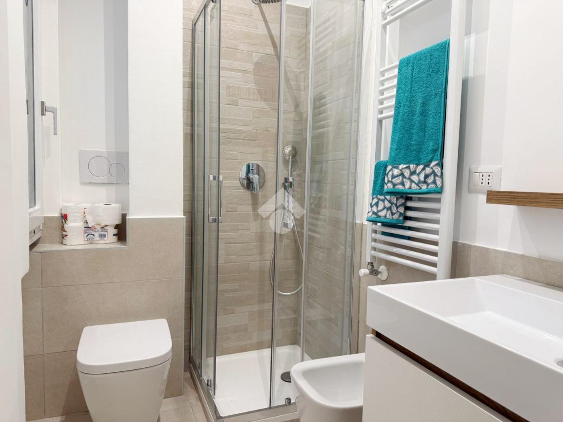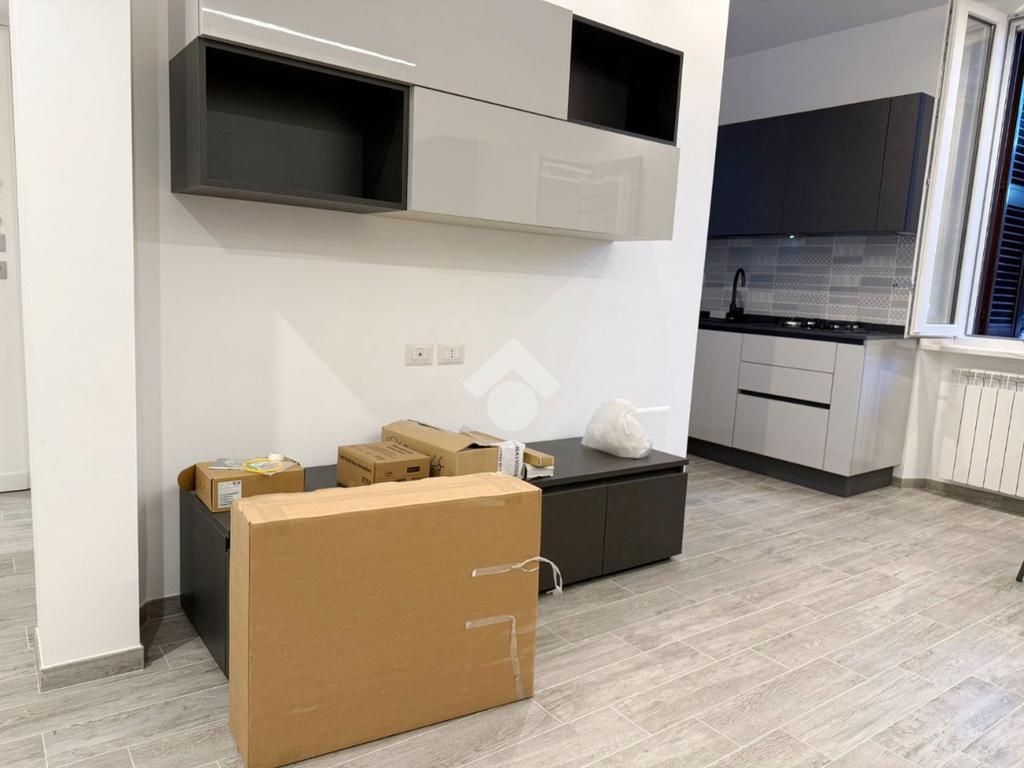 L'appartamento è composto da soggiorno, cucinotto, camera da letto, bagno e ripostiglio. Unica esposizione su giardini condominiali.