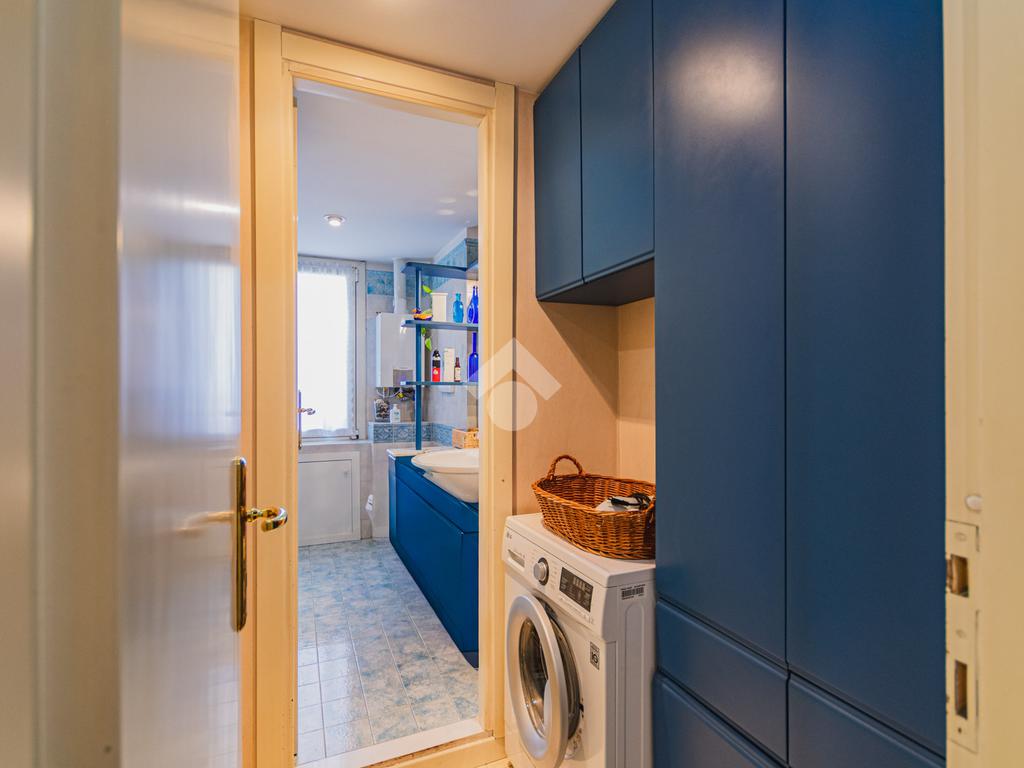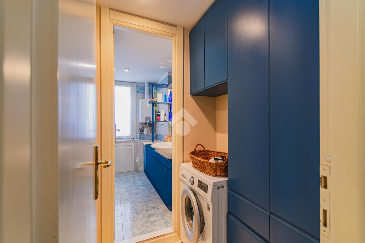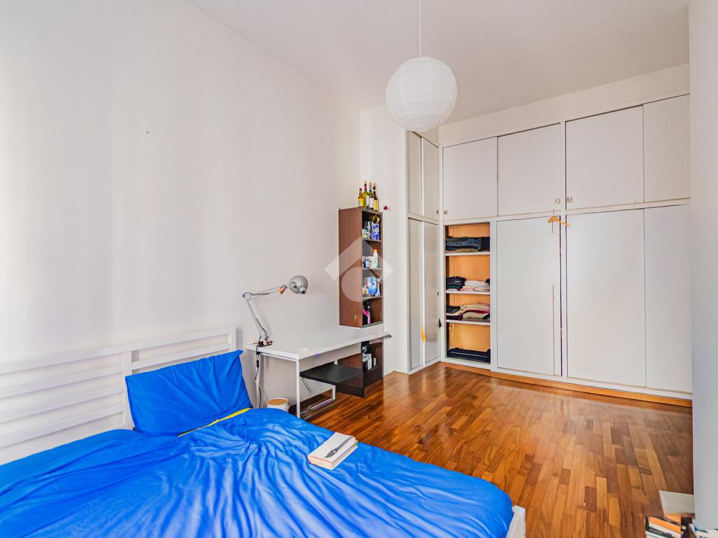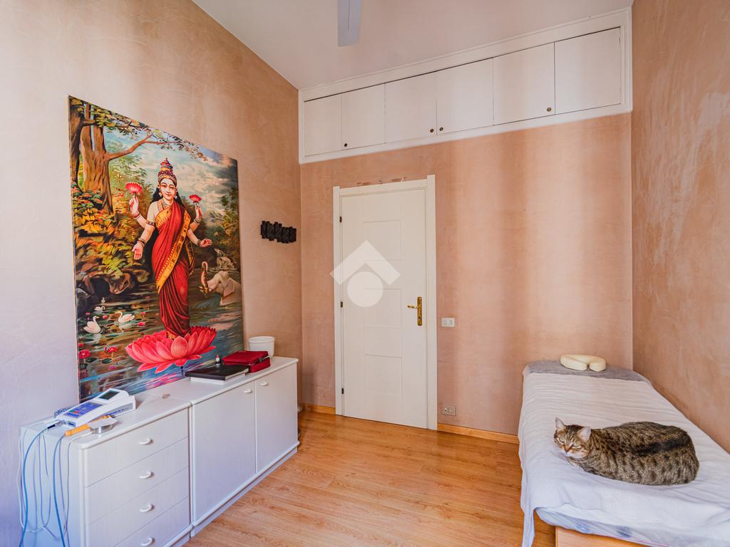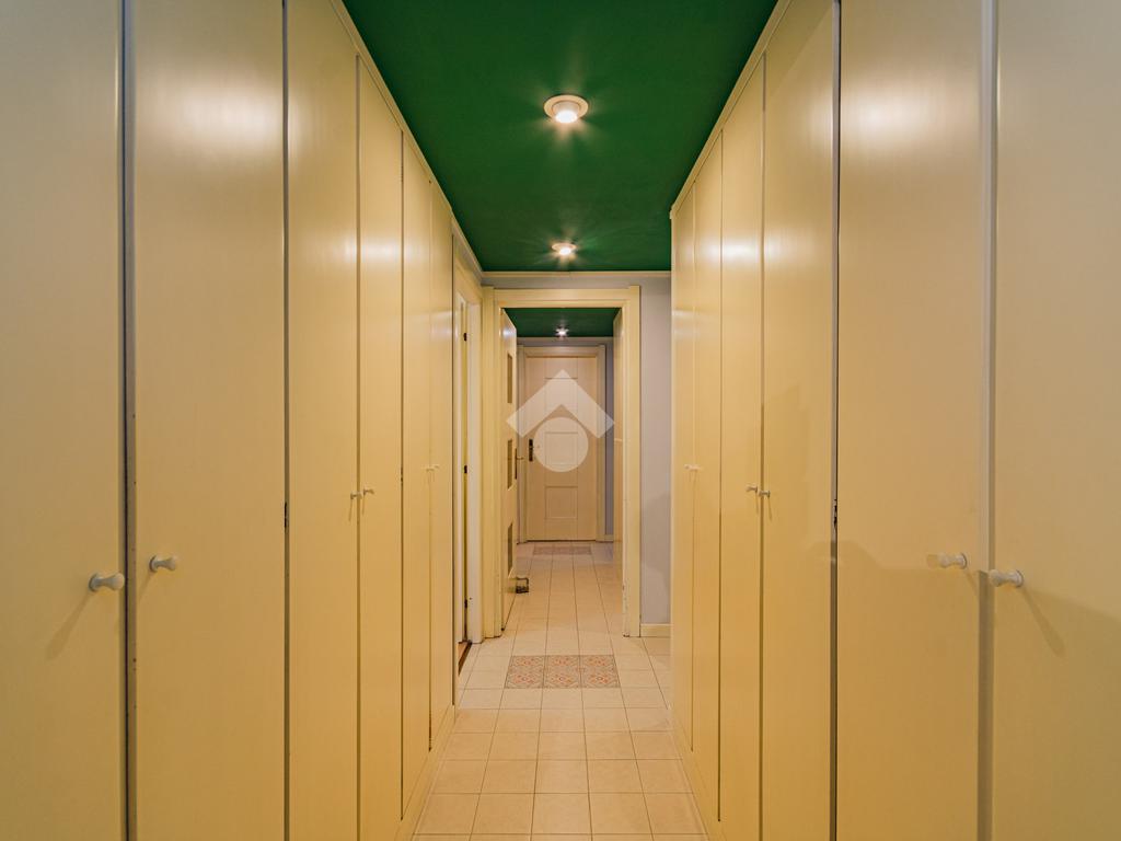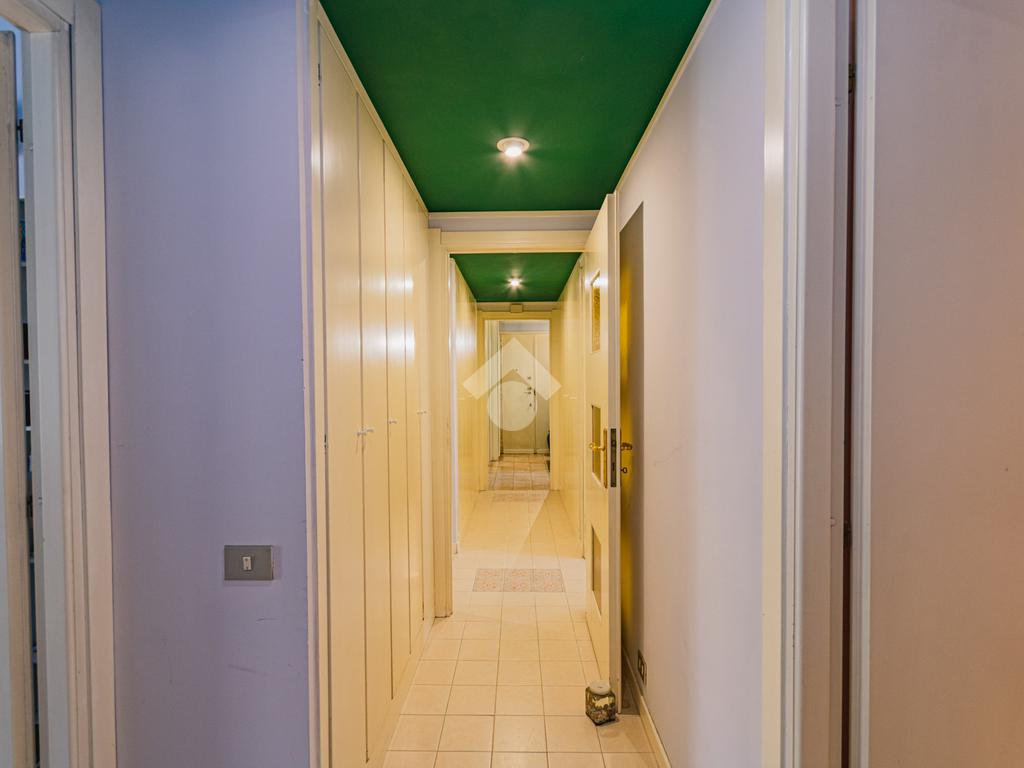 L'appartamento si compone di ingresso, tre camere da letto, ampio soggiorno, cucina abitabile, studio e due bagni. Un comodo soppalco corre su tutta la zona giorno offrendo un ulteriore spazio di deposito. La presenza di tre balconi, di cui uno con affaccio sul cortile interno del palazzo, permette di godere di spazi esterni privati, ideali per momenti di relax.