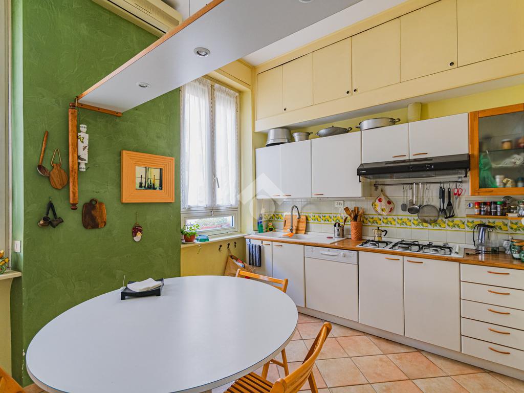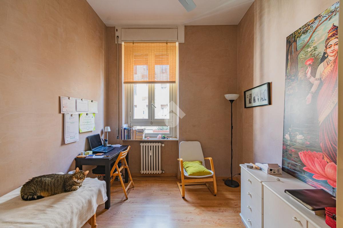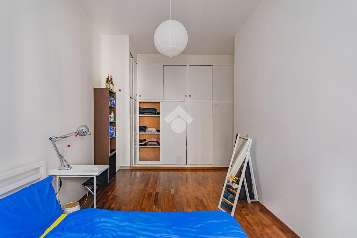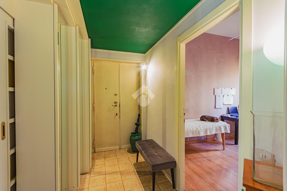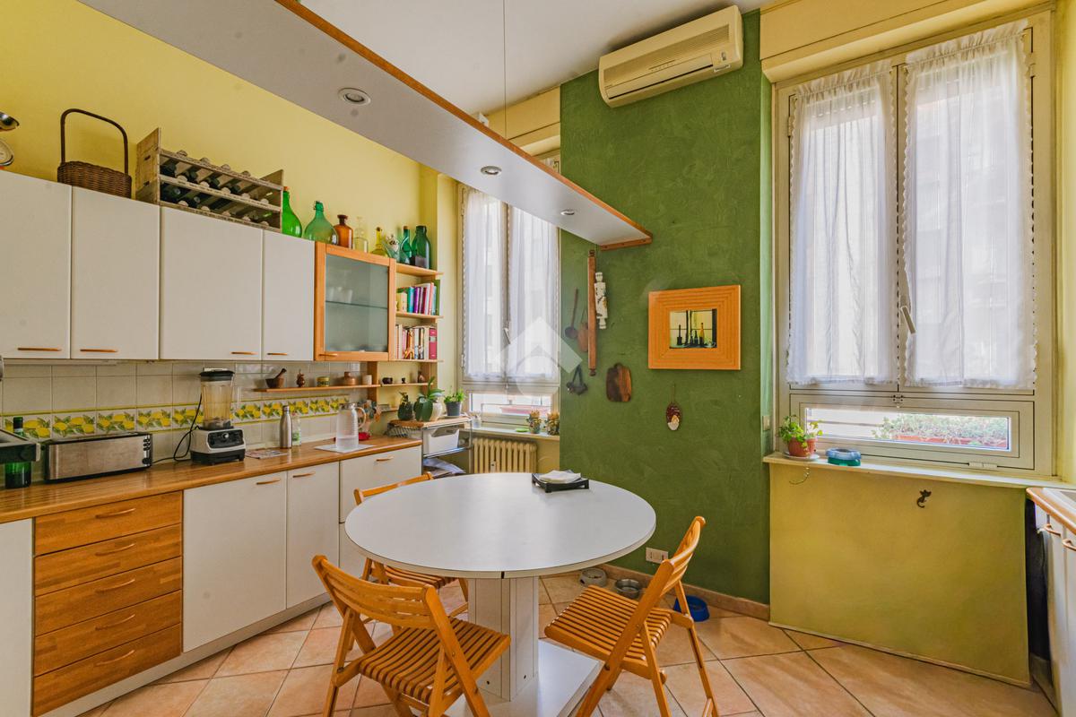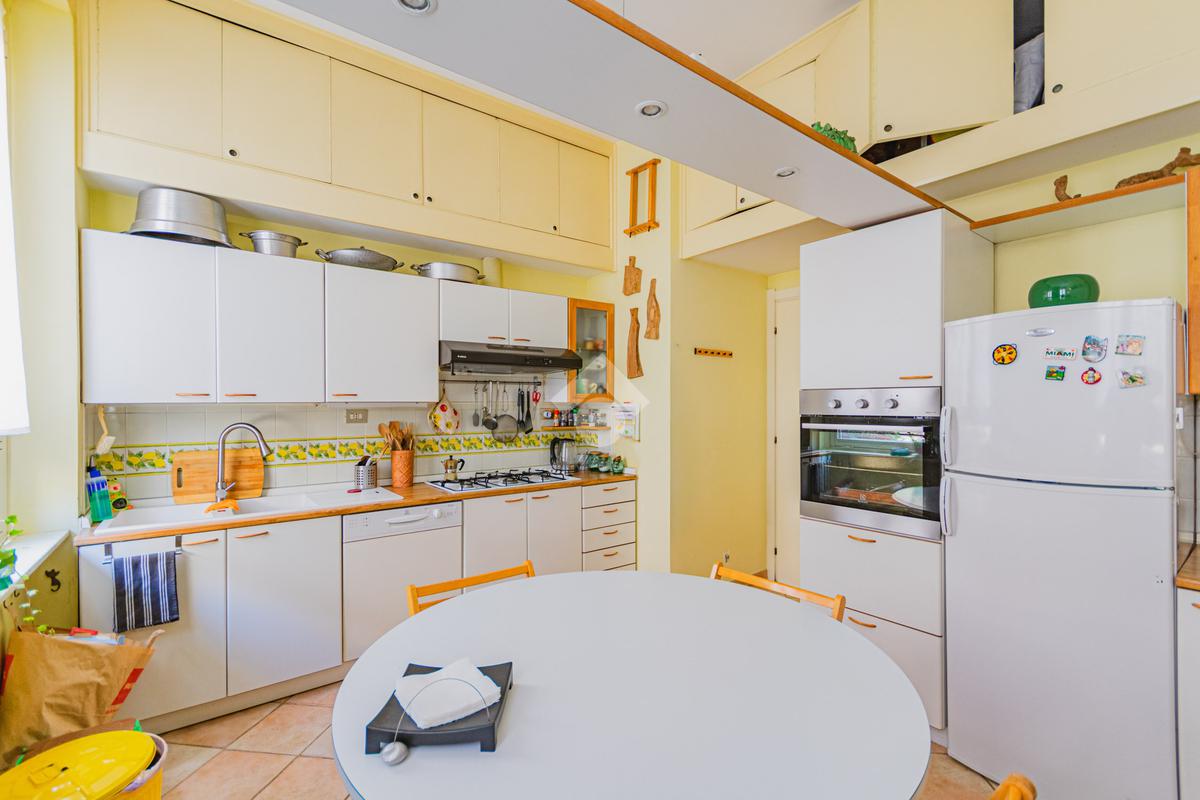 L'appartamento si compone di ingresso, tre camere da letto, ampio soggiorno, cucina abitabile, studio e due bagni. Un comodo soppalco corre su tutta la zona giorno offrendo un ulteriore spazio di deposito. La presenza di tre balconi, di cui uno con affaccio sul cortile interno del palazzo, permette di godere di spazi esterni privati, ideali per momenti di relax.