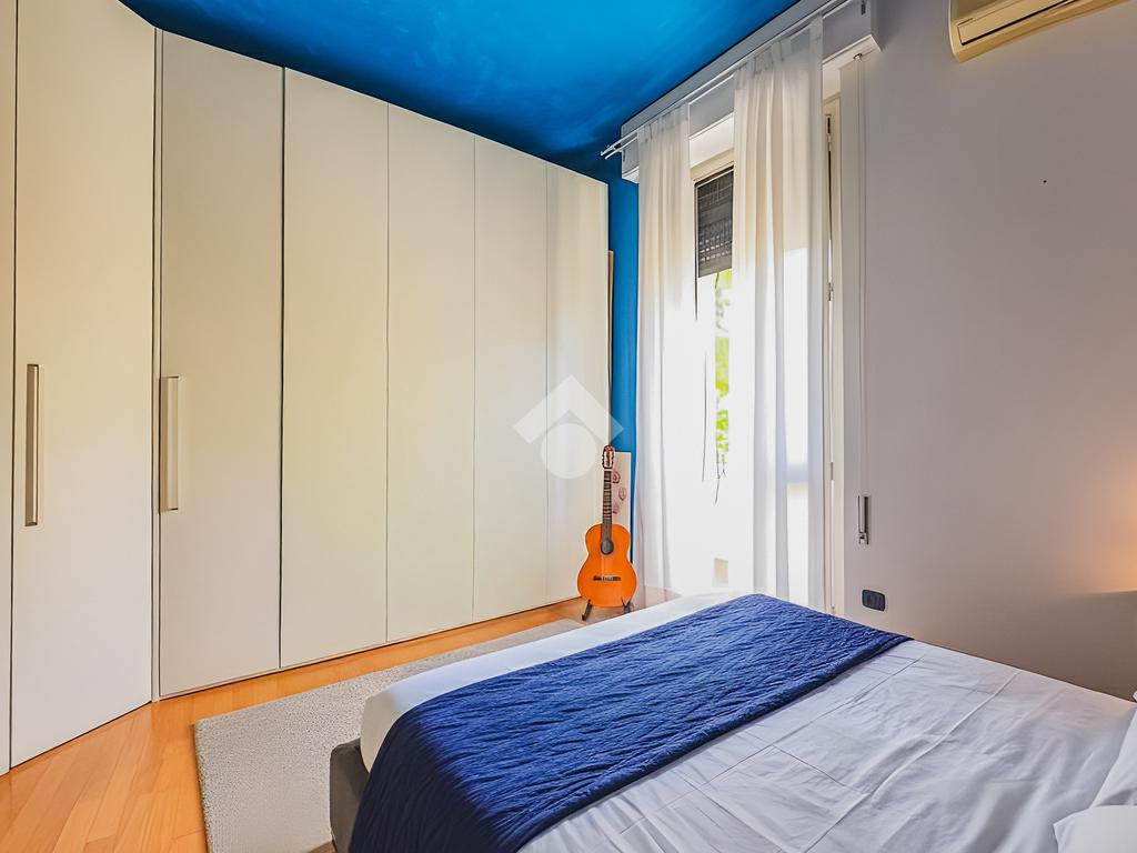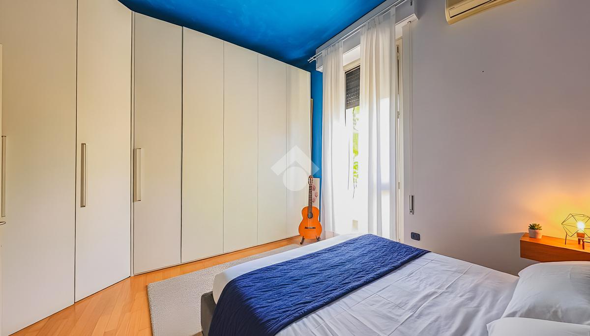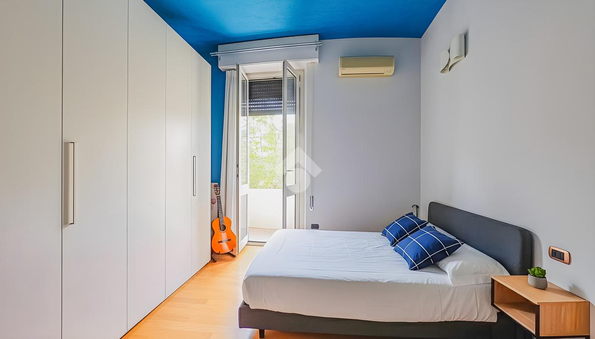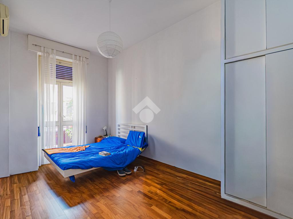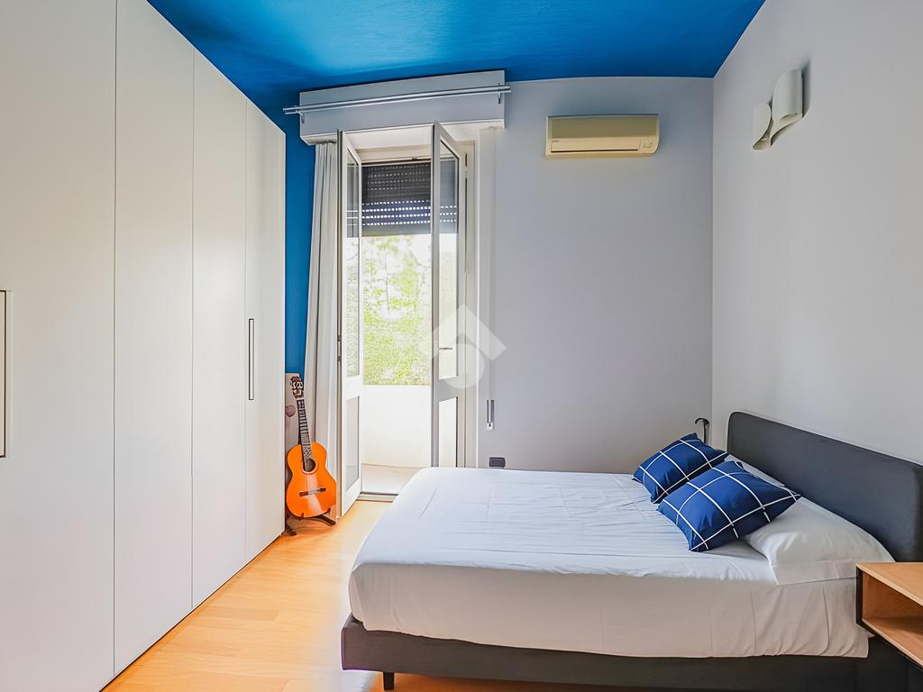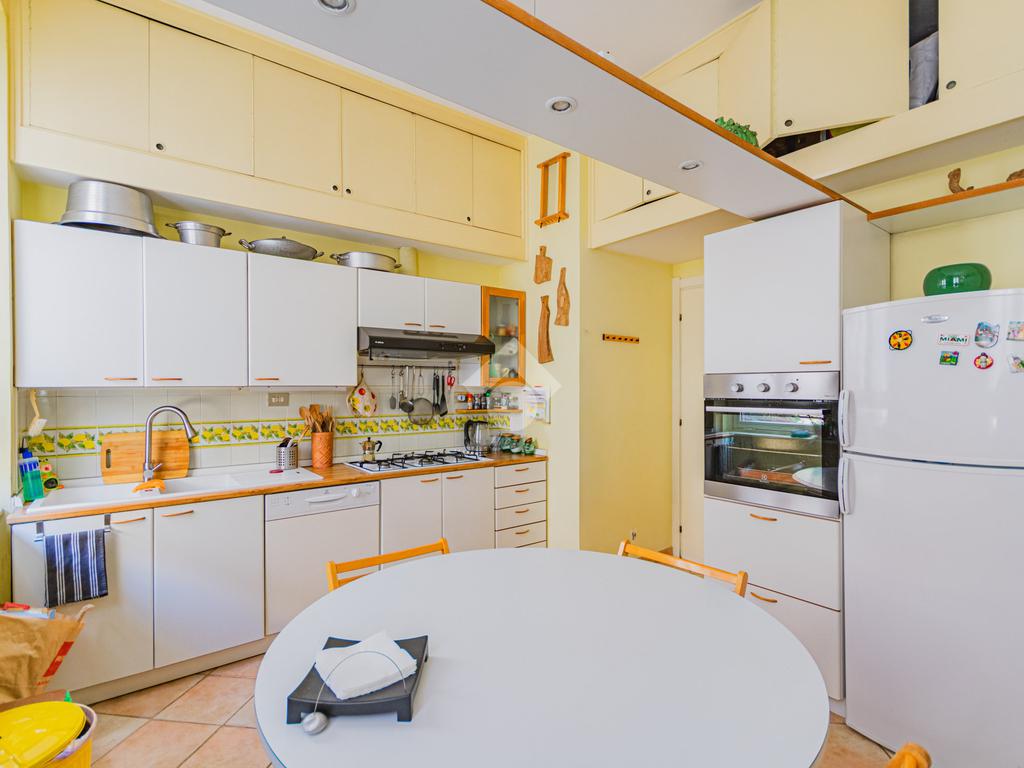 L'appartamento si compone di ingresso, tre camere da letto, ampio soggiorno, cucina abitabile, studio e due bagni. Un comodo soppalco corre su tutta la zona giorno offrendo un ulteriore spazio di deposito. La presenza di tre balconi, di cui uno con affaccio sul cortile interno del palazzo, permette di godere di spazi esterni privati, ideali per momenti di relax.