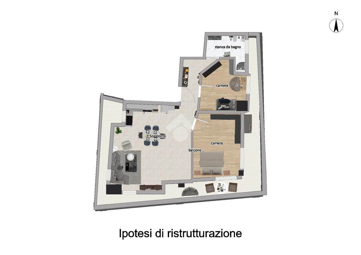 L'immobile può essere facilmente riadattato in trilocale come dimostrato in planimetria.