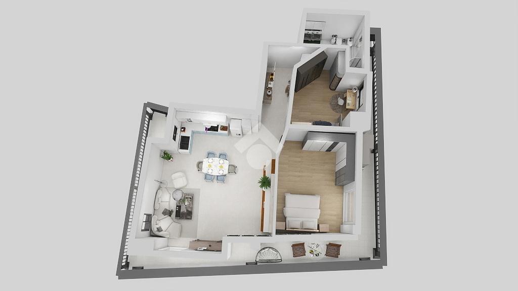 L'immobile attualmente si compone di ingresso, soggiorno, camera da letto matrimoniale, cucina, bagno, spazio lavanderia e balcone perimetrale che permette una tripla esposizione.